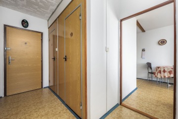 Byt v Měcholupech nabízí skvělou příležitost pro ty, kteří hledají výhodnou koupi a možnost vytvořit si domov podle svých představ. Nachází se v 7. patře panelového domu postaveného v roce 1987, který má celkem 82 jednotek rozložených do 11 pater. Byt je umístěn za dalšími dveřmi na společné chodbě se třemi sousedy, což zásadně zvyšuje úroveň bezpečnosti.